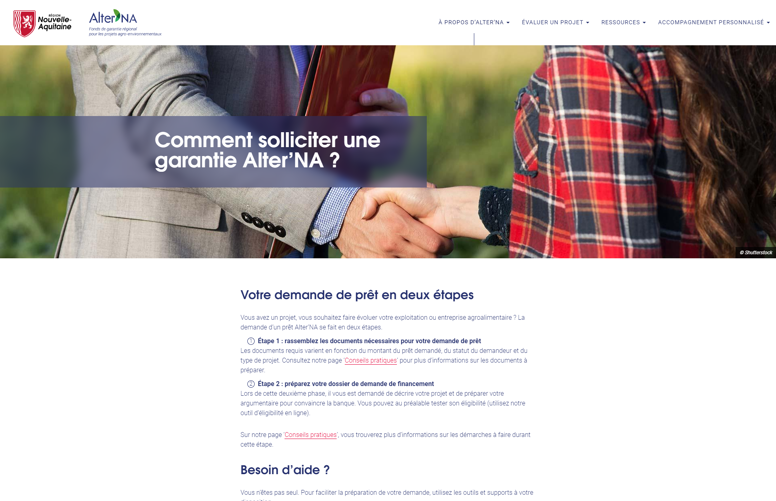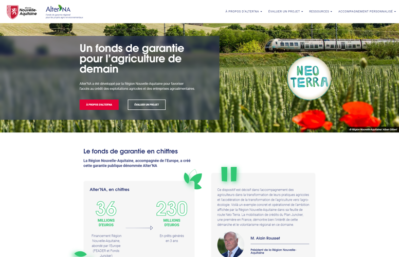 Alter’NA is a new public guarantee launched by the European Investment Bank (EIB) and the Nouvelle Aquitaine Region of France. It provides farmers and food businesses in the Region who are moving to more environmentally friendly ways of producing food with lower risk finance. The EIB called on Tipik to develop a website that could: