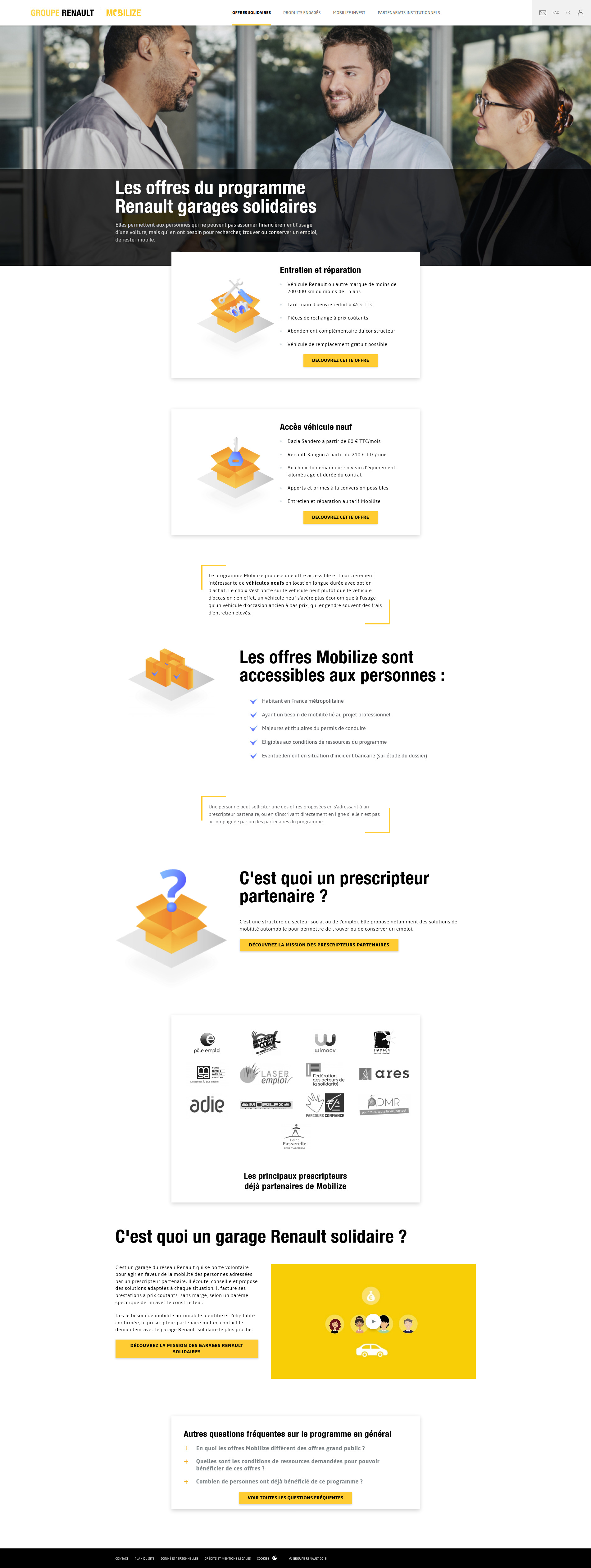 Our team created a simpler, more efficient structure for the site based on our detailed functional analysis. Information on the Mobilize offer – which includes access to nearest Renault’s ‘Solidarity garages’ as well as sustainable, ethically-sourced car accessories – is now easier to find. The design was completely overhauled, and the streamlined content integrated in Drupal.