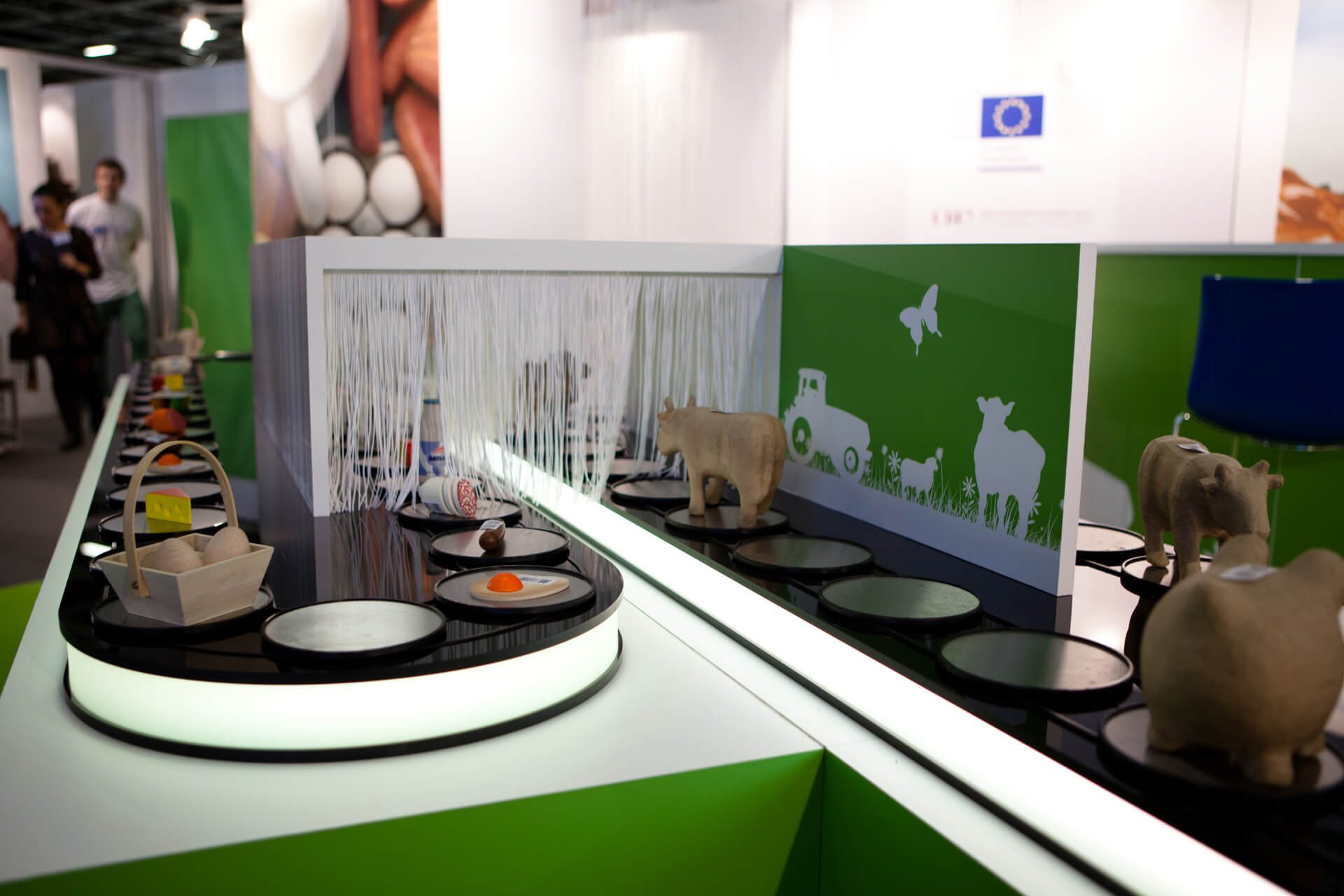 The Commission was keen to get over the work it is doing on food traceablilty so Tipik designed a conveyer belt loaded with foods to show the link between shop and farm visually.