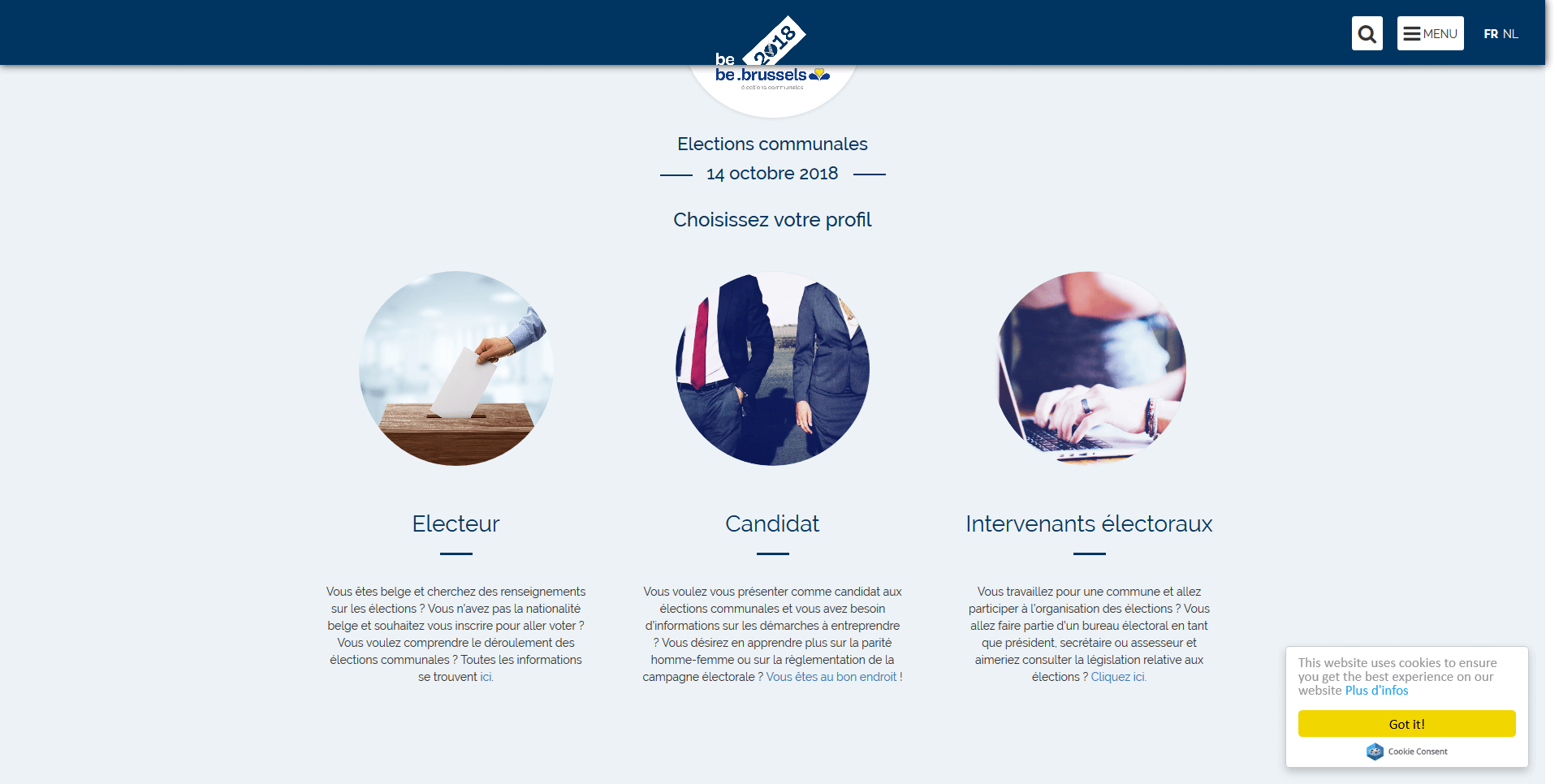 The site will be used by both Belgian and foreign voters, candidates and those responsible for the administration of elections. All the various visitors will be coming to the site with different needs, technical abilities and profiles.