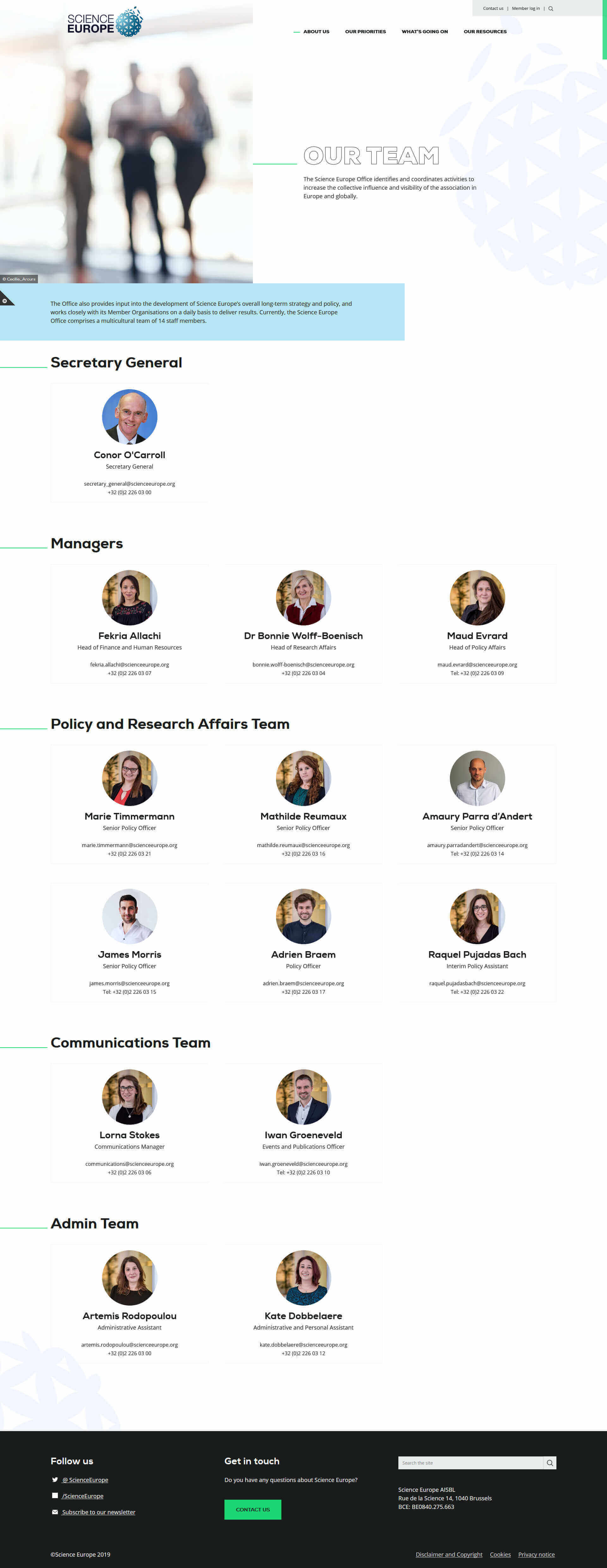 Tipik has also developed a fully custom contact manager to manage easily the members but also the other external contacts classified per type. From this tool, Science Europe can manage their contact sheets but also set their permissions on the site and communicate with them via an interconnected Mailchimp account.