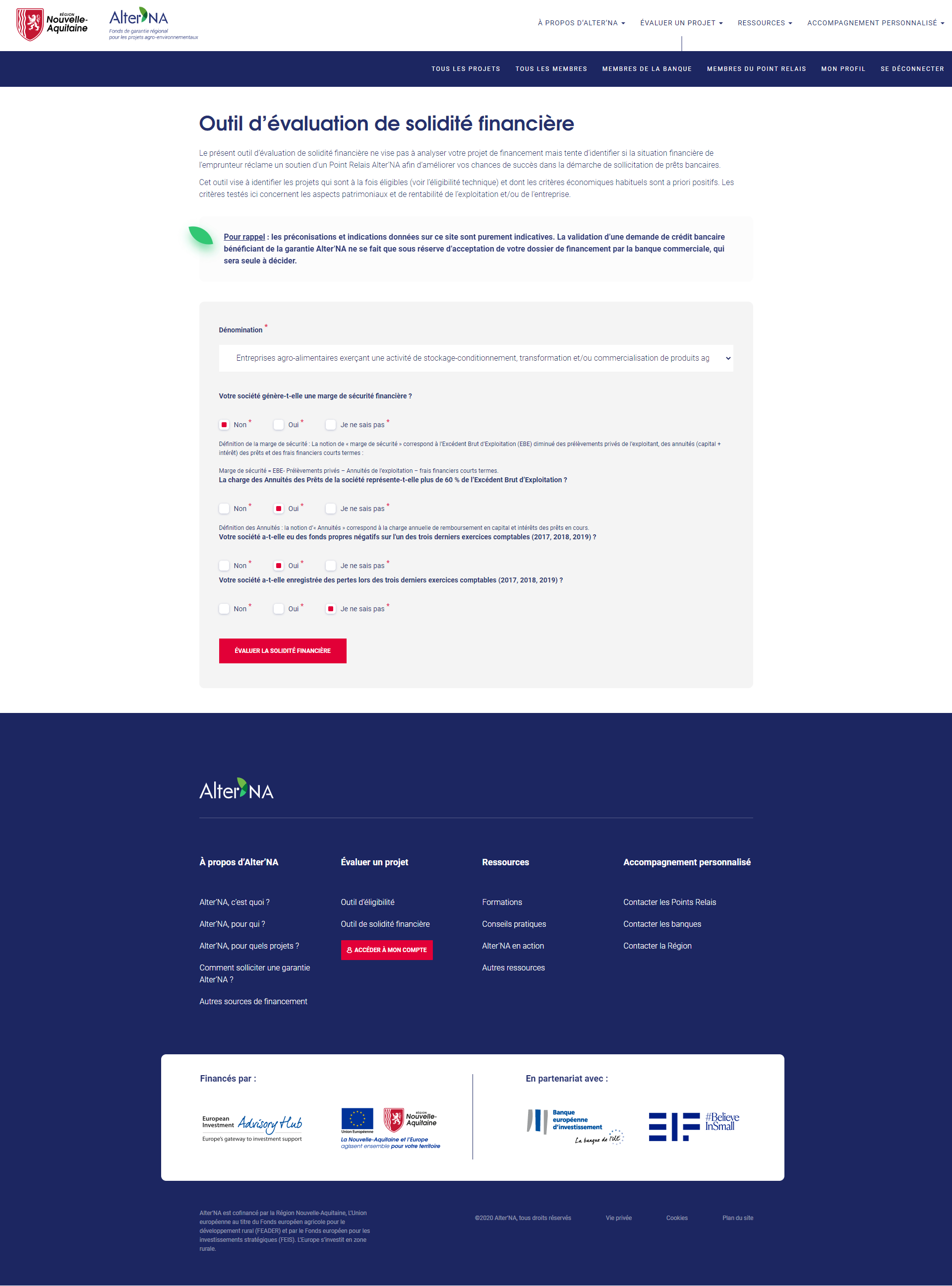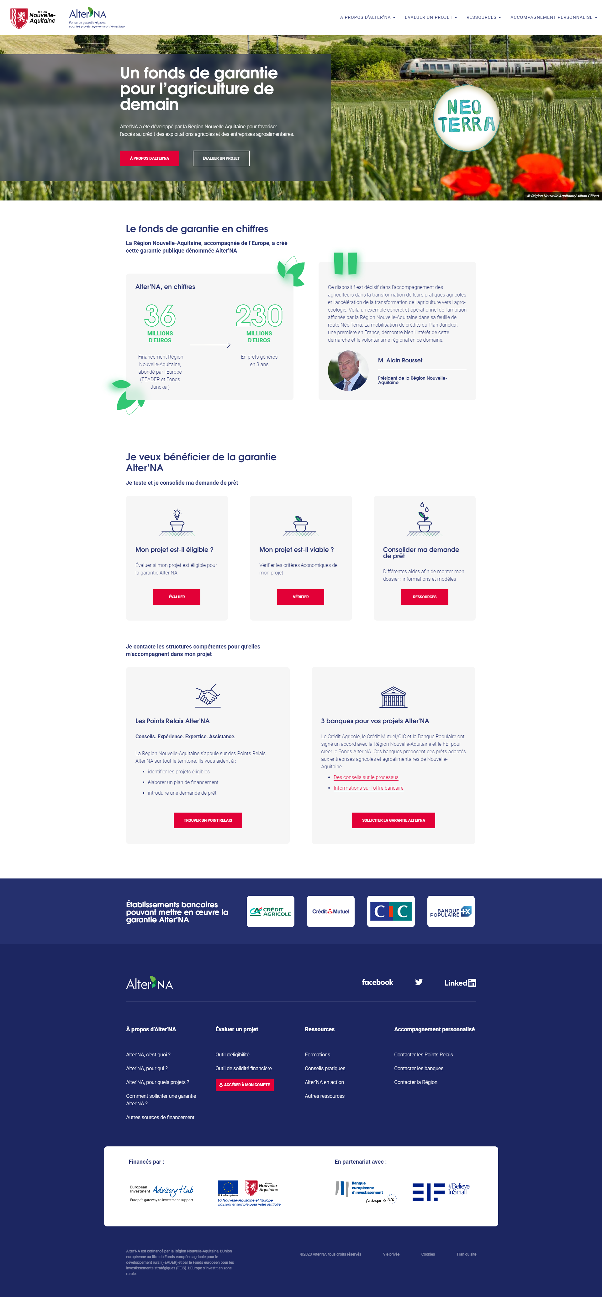 Alter’NA is a new public guarantee launched by the European Investment Bank (EIB) and the Nouvelle Aquitaine Region of France. It provides farmers and food businesses in the Region who are moving to more environmentally friendly ways of producing food with lower risk finance. The EIB called on Tipik to develop a website that could: